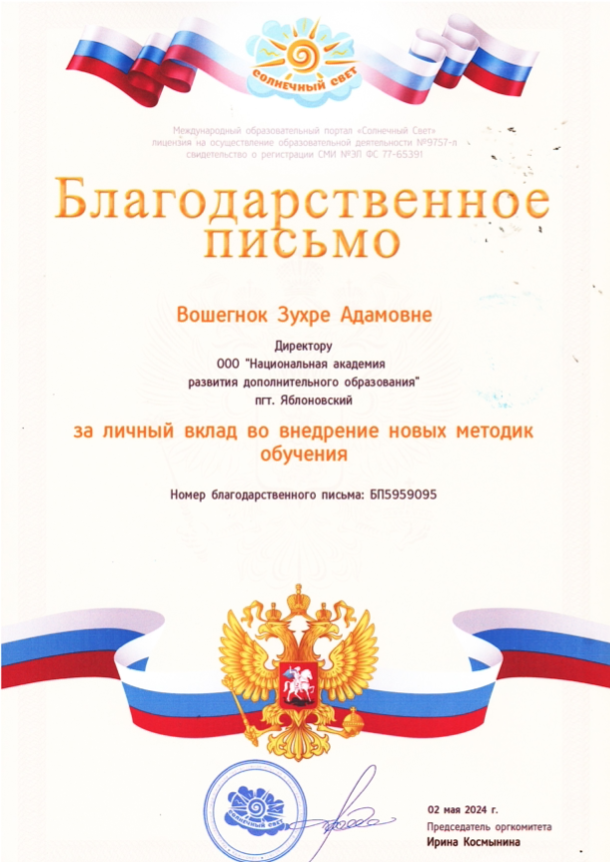 Образовательная деятельность осуществляется в соответствии с лицензией, выданной Министреством образования Республики Адыгея